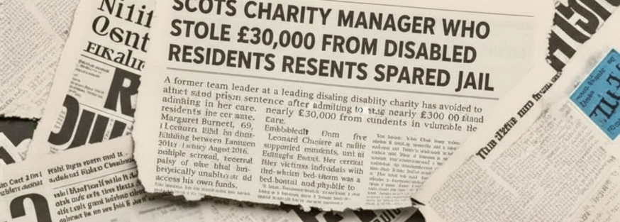 Margaret Burnett, 69, embezzled £29,900 from five disabled residents at a Leonard Cheshire-supported accommodation unit in Edinburgh between January 2014 and August 2016. Her victims included individuals with cerebral palsy and multiple sclerosis, one of whom was bedbound in a hospital and physically unable to access his funds.